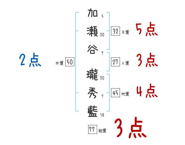加瀬谷瓏秀藍さんの総運は77画の3つ星