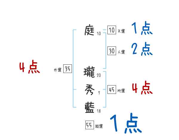 庭瓏秀藍さんの画数の鑑定結果