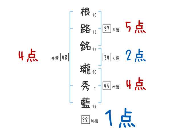 根路銘瓏秀藍さんの画数の鑑定結果