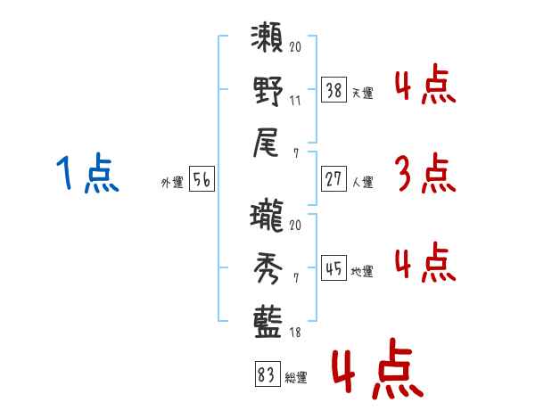 瀬野尾瓏秀藍さんの総運は83画の4つ星
