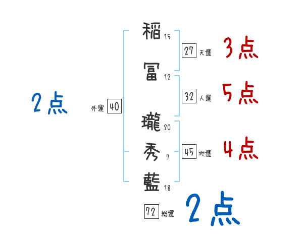 稲冨瓏秀藍さんの外運は40画の2つ星