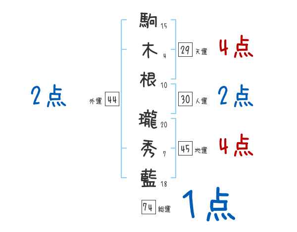 駒木根瓏秀藍さんの総運は74画の1つ星