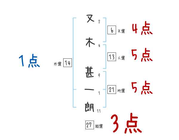 又木甚一朗さんの画数の鑑定結果