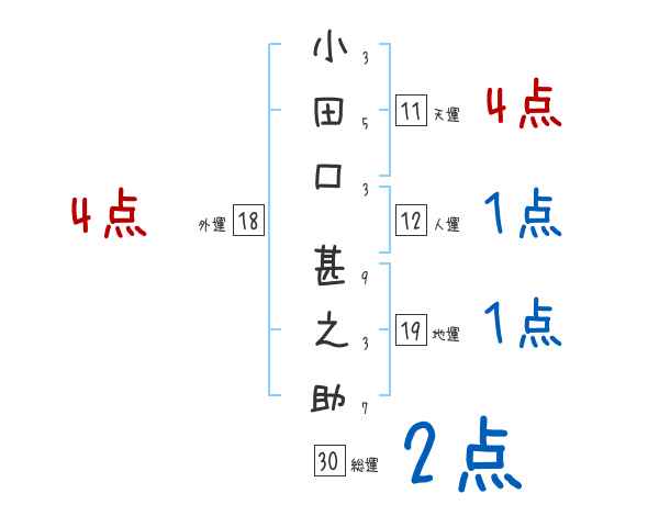 天運![]() | 小田口甚之助さんの天運は11画の4つ星!着実に富や地位を得る幸運な人生。 家系が持つ宿命的な運勢を表します。祖先から受け継いだ苗字ですので自分の力が及びません。家柄を象徴します。 |