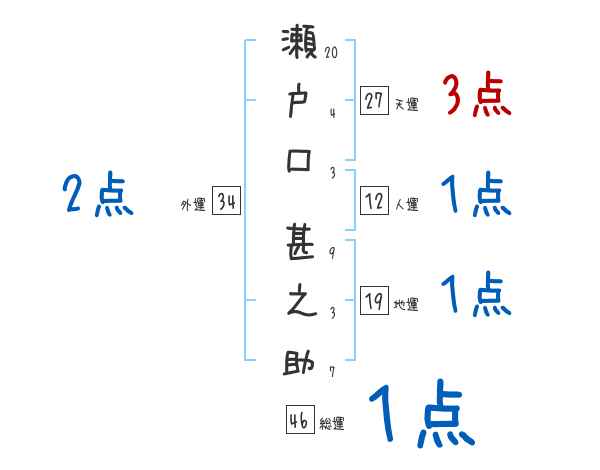 総運![]() | 瀬戸口甚之助さんの総運は46画の1つ星!迷走することが多く苦労するかも。目先のことにとらわれないように。 あなたの人生を表す1番重要な運勢です。生涯を通じて影響する総合運となり、主に50歳以降の晩年期に影響を及ぼします。 |