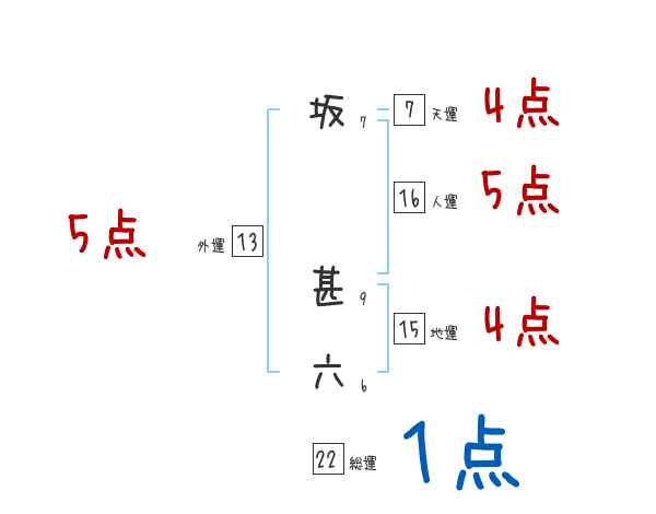 坂甚六さんの画数の鑑定結果