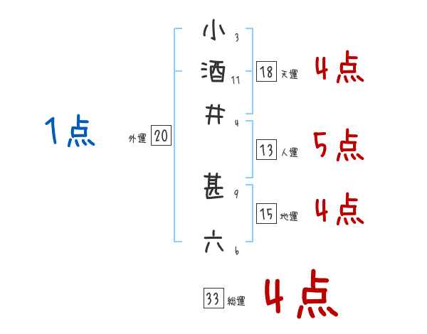 小酒井甚六さんの画数の鑑定結果
