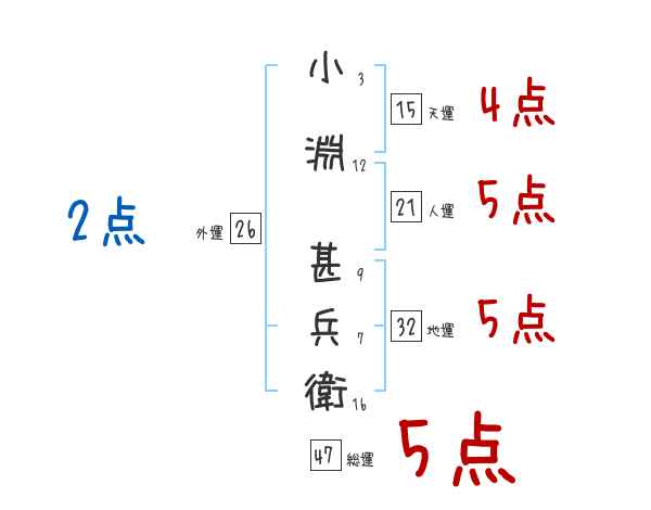 小淵甚兵衛さんの画数の鑑定結果