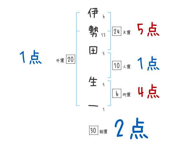 総運![]() | 伊勢田生一さんの総運は30画の2つ星!浮き沈みの激しさに注意しましょう。 あなたの人生を表す1番重要な運勢です。生涯を通じて影響する総合運となり、主に50歳以降の晩年期に影響を及ぼします。 |