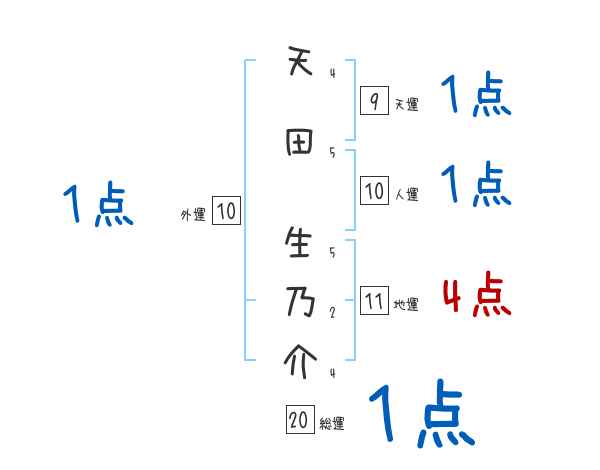 天運![]() | 天田生乃介さんの天運は9画の1つ星!消極的で才能を発揮することが苦手なことも。周りの意見に耳を傾けましょう。 家系が持つ宿命的な運勢を表します。祖先から受け継いだ苗字ですので自分の力が及びません。家柄を象徴します。 |