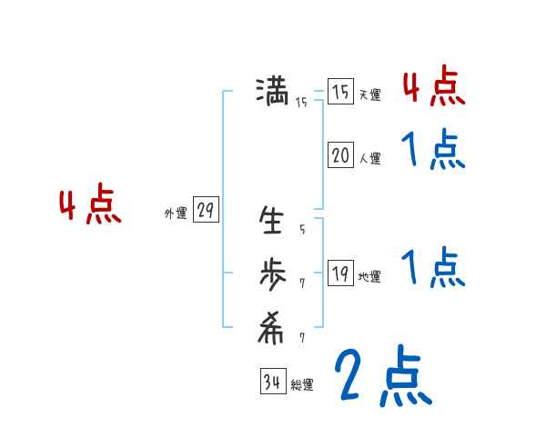 家系が持つ宿命的な運勢を表します。祖先から受け継いだ苗字ですので自分の力が及びません。家柄を象徴します。