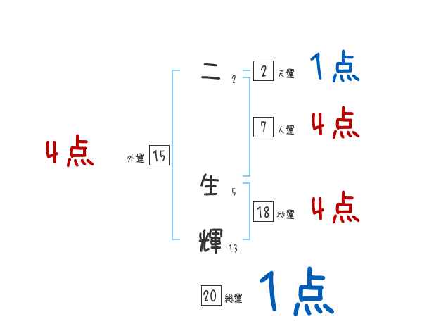 二生輝さんの画数の鑑定結果