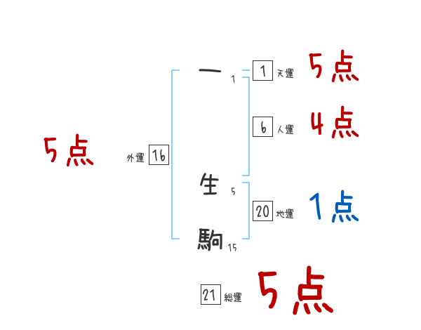 一生駒さんの画数の鑑定結果