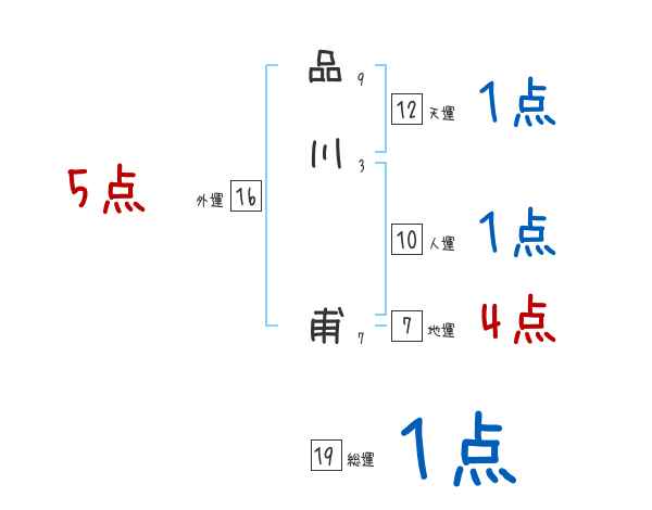 外運![]() | 品川甫さんの外運は16画の5つ星!人望が厚く大きく発展する。逆転成功が見える。 生活面を象徴する運勢です。外部から受ける影響力を表し、結婚運、家庭運や職場、環境への順応性を表します。 |