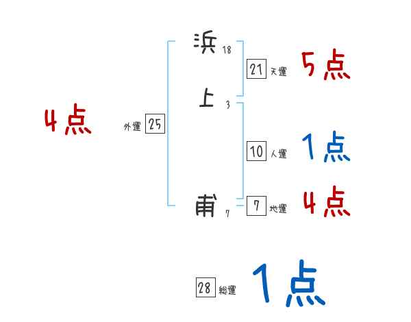 総運![]() | 浜上甫さんの総運は28画の1つ星!家庭環境に注意。スポーツで活躍できる能力があるかも。 あなたの人生を表す1番重要な運勢です。生涯を通じて影響する総合運となり、主に50歳以降の晩年期に影響を及ぼします。 |