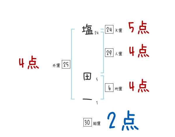 天運![]() | 塩田一さんの天運は24画の5つ星!家庭運が良く順調な人生。金運にも恵まれる。 家系が持つ宿命的な運勢を表します。祖先から受け継いだ苗字ですので自分の力が及びません。家柄を象徴します。 |