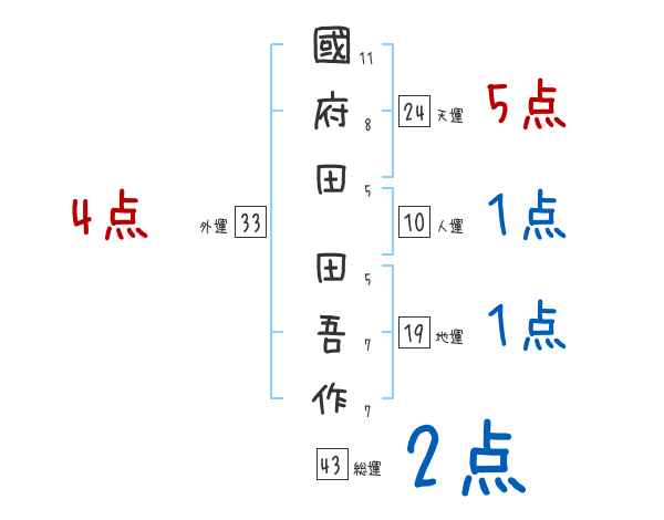 國府田田吾作さんの画数の鑑定結果