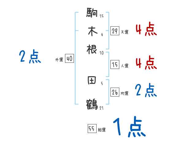 駒木根田鶴さんの画数の鑑定結果