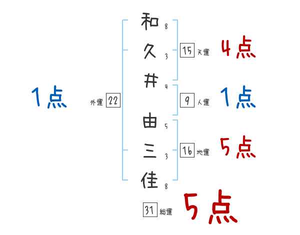 和久井由三佳さんの画数の鑑定結果