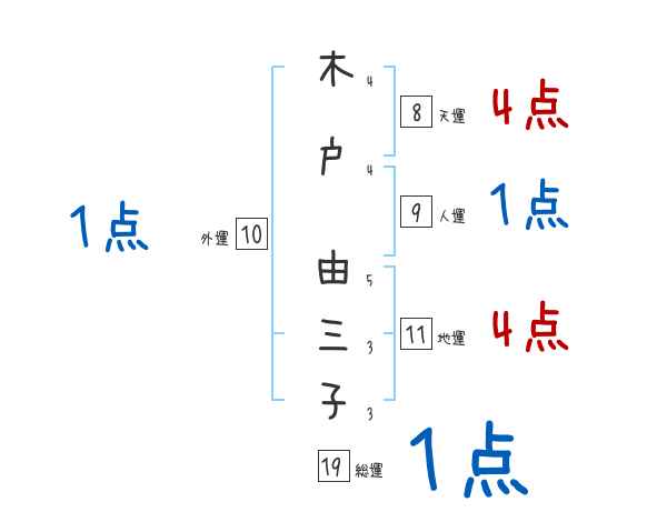 木戸由三子さんの画数の鑑定結果