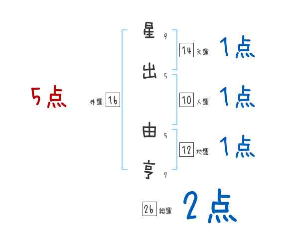 星出由亨さんの画数の鑑定結果