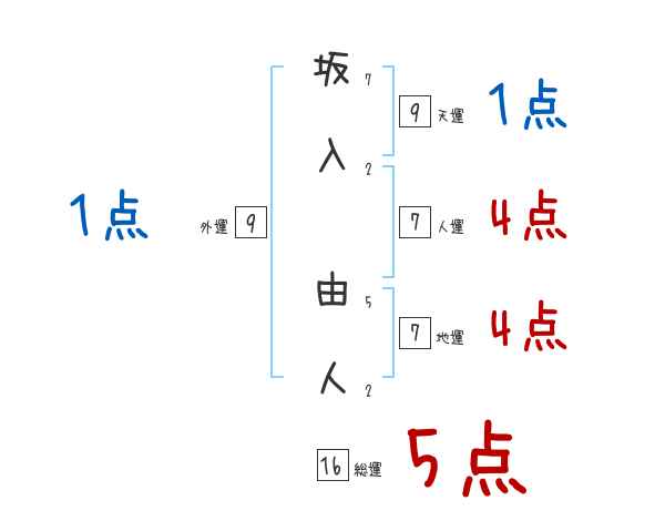 坂入由人さんの画数の鑑定結果