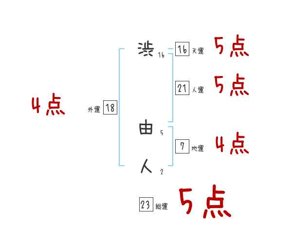 渋由人さんの画数の鑑定結果
