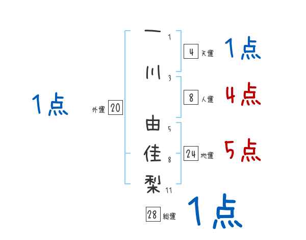 一川由佳梨さんの画数の鑑定結果
