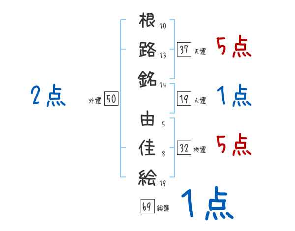 地運![]() | 根路銘由佳絵さんの地運は32画の5つ星!柔軟性があり成功する。チャンスが多く金運が良い。 個性を表す基礎的な運勢です。性格形成や対人関係、行動力など家庭環境に影響されます。主に誕生してから20歳くらいまでの若年期の運勢を表します。 |