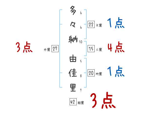 総運![]() | 多々納由佳里さんの総運は42画の3つ星!病気に注意。多芸であるが消極的でおとなしい。 あなたの人生を表す1番重要な運勢です。生涯を通じて影響する総合運となり、主に50歳以降の晩年期に影響を及ぼします。 |