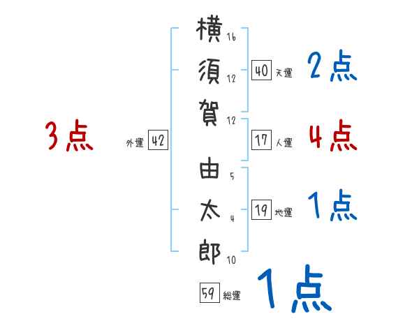 外運![]() | 横須賀由太郎さんの外運は42画の3つ星!病気に注意。多芸であるが消極的でおとなしい。 生活面を象徴する運勢です。外部から受ける影響力を表し、結婚運、家庭運や職場、環境への順応性を表します。 |