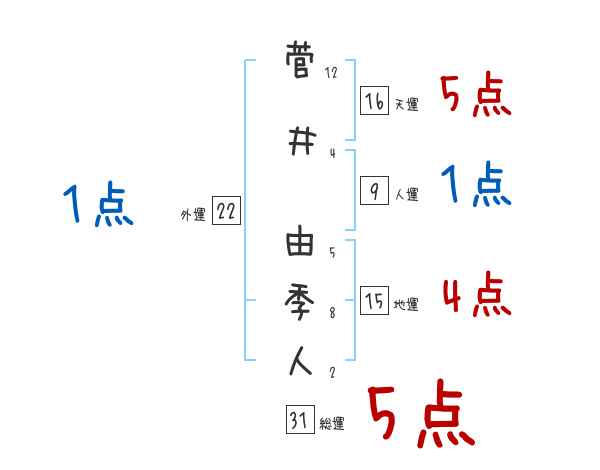 菅井由季人さんの総運は31画の5つ星