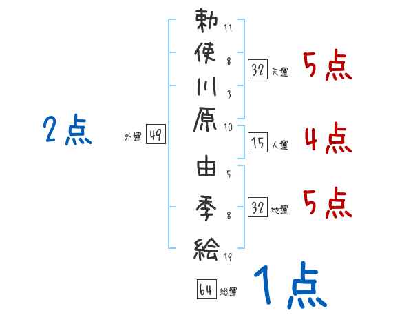 勅使川原由季絵さんの画数の鑑定結果