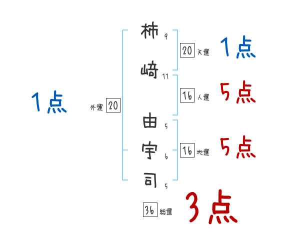総運![]() | 柿﨑由宇司さんの総運は36画の3つ星!先見性が豊かです。多少神経質で苦労することも。 あなたの人生を表す1番重要な運勢です。生涯を通じて影響する総合運となり、主に50歳以降の晩年期に影響を及ぼします。 |