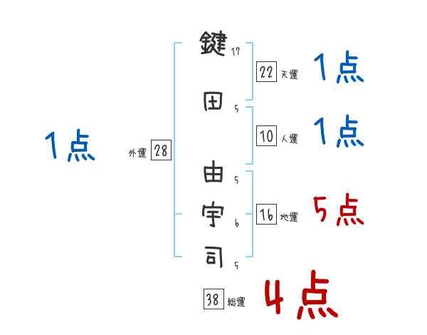 鍵田由宇司さんの画数の鑑定結果