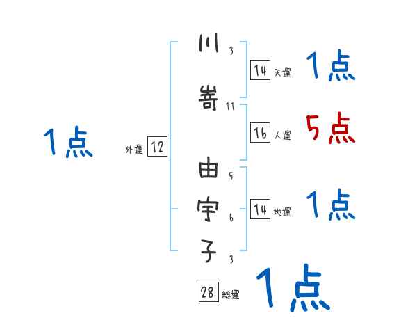 川嵜由宇子さんの画数の鑑定結果
