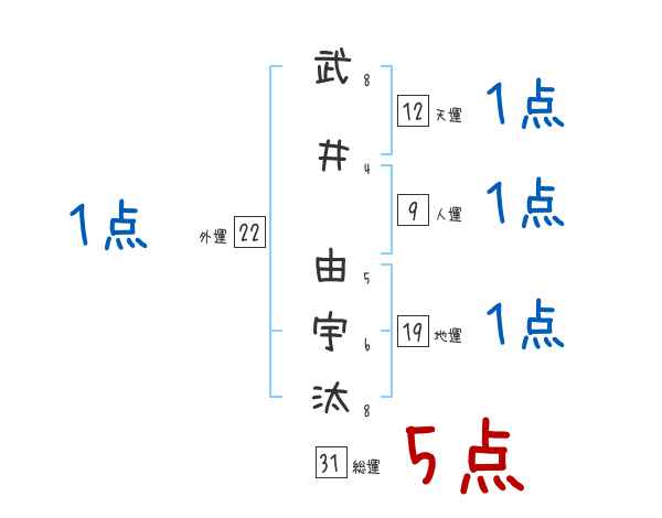 武井由宇汰さんの総運は31画の5つ星
