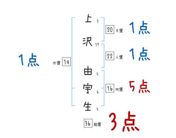 上沢由宇生さんの画数の鑑定結果
