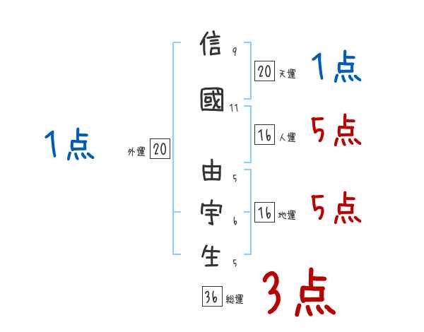 総運![]() | 信國由宇生さんの総運は36画の3つ星!先見性が豊かです。多少神経質で苦労することも。 あなたの人生を表す1番重要な運勢です。生涯を通じて影響する総合運となり、主に50歳以降の晩年期に影響を及ぼします。 |