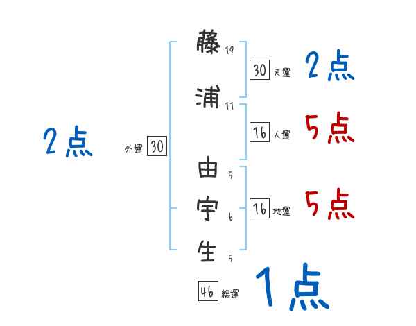 藤浦由宇生さんの画数の鑑定結果