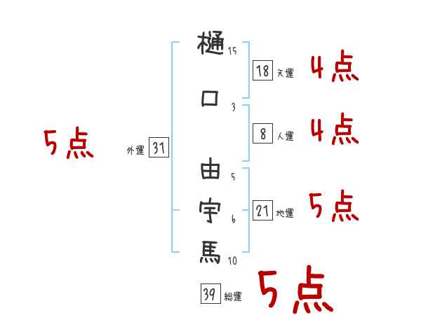 樋口由宇馬さんの画数の鑑定結果