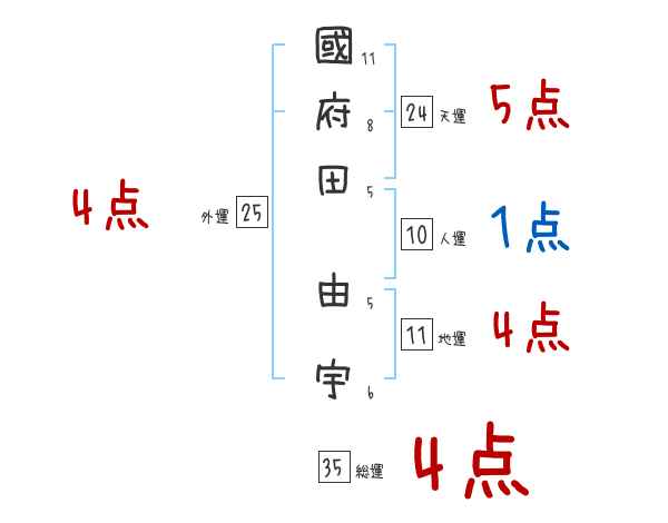 國府田由宇さんの画数の鑑定結果