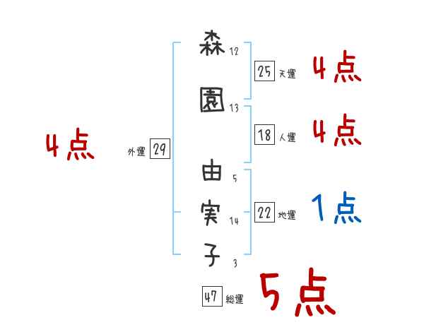 総運![]() | 森園由実子さんの総運は47画の5つ星!実力が開花し発展する円満な人生。財に恵まれる。 あなたの人生を表す1番重要な運勢です。生涯を通じて影響する総合運となり、主に50歳以降の晩年期に影響を及ぼします。 |