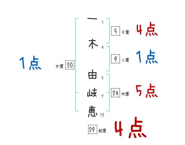 一木由岐恵さんの総運は29画の4つ星