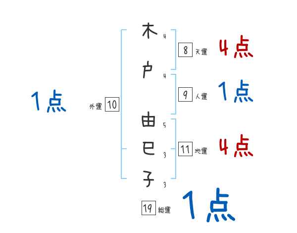 外運![]() | 木戸由巳子さんの外運は10画の1つ星!不安を感じやすい傾向。ストレスを抱えないように注意しましょう。 生活面を象徴する運勢です。外部から受ける影響力を表し、結婚運、家庭運や職場、環境への順応性を表します。 |
