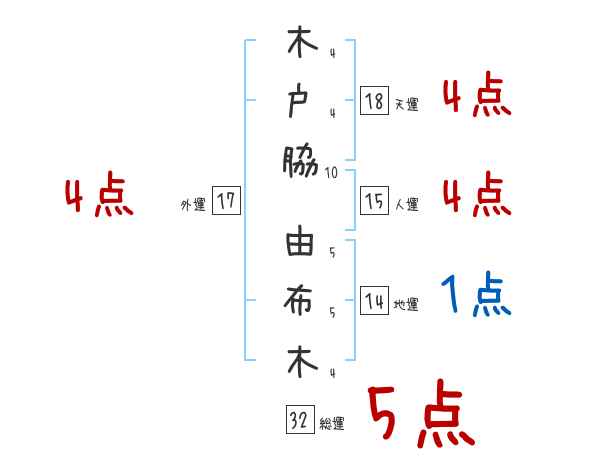 総運![]() | 木戸脇由布木さんの総運は32画の5つ星!柔軟性があり成功する。チャンスが多く金運が良い。 あなたの人生を表す1番重要な運勢です。生涯を通じて影響する総合運となり、主に50歳以降の晩年期に影響を及ぼします。 |