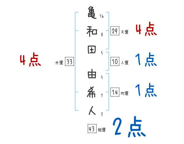 亀和田由希人さんの画数の鑑定結果