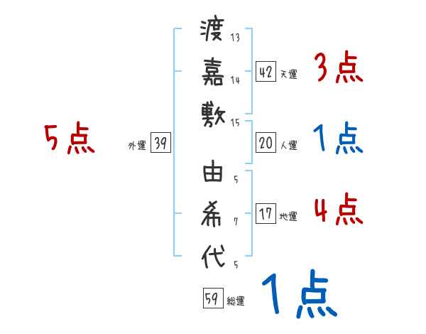 渡嘉敷由希代さんの画数の鑑定結果