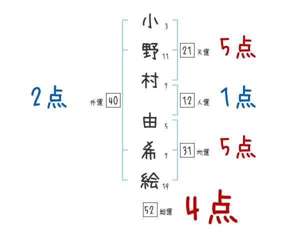 小野村由希絵さんの画数の鑑定結果