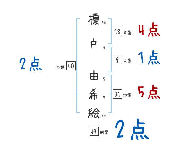 天運![]() | 榎戸由希絵さんの天運は18画の4つ星!情熱的で剛気。忍耐力があり信頼される。 家系が持つ宿命的な運勢を表します。祖先から受け継いだ苗字ですので自分の力が及びません。家柄を象徴します。 |